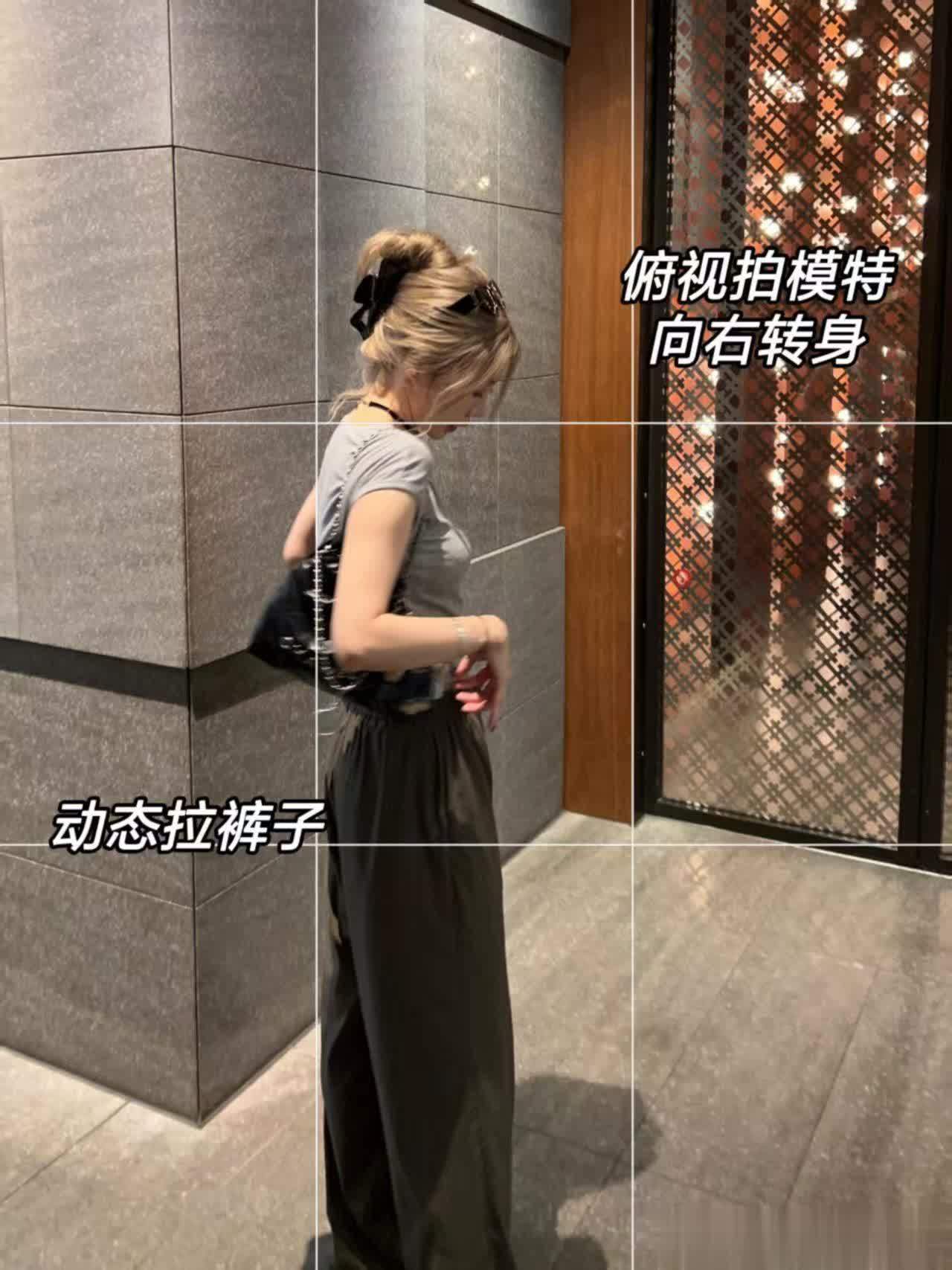 9、模特靠左向后转,可以微抬屁股,凹出曲线。